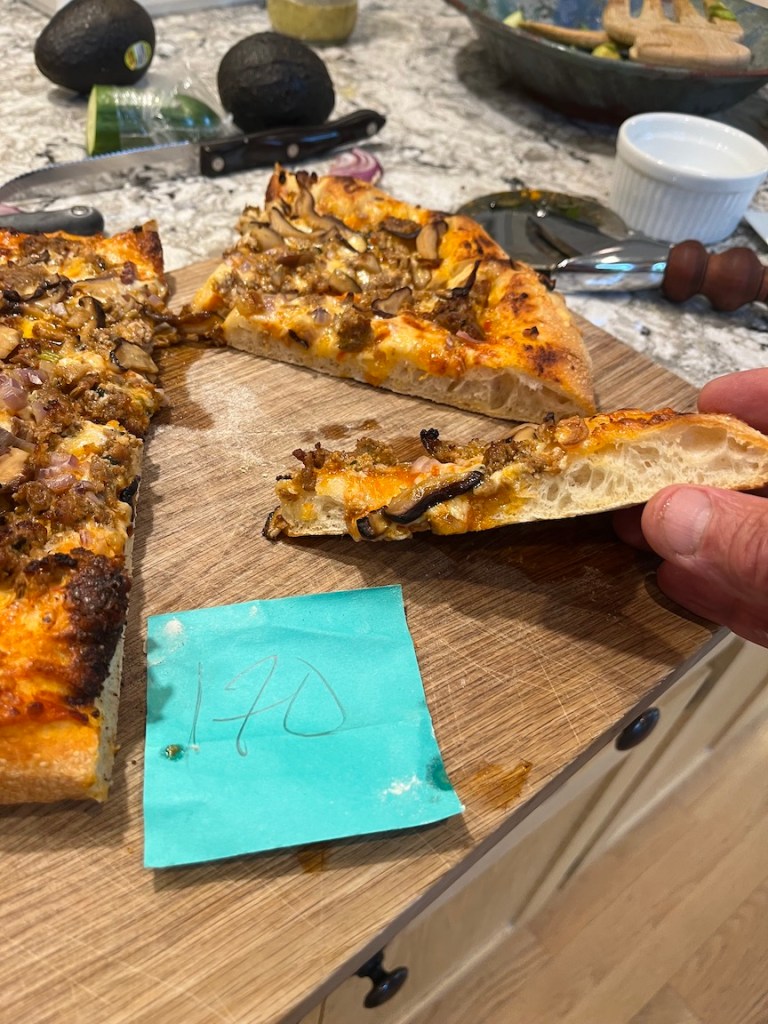 Each dough made a tasty pizza with 140g #1 because of how lit and airy it was. They all held up well to their ingredients and did not have the nose sag.